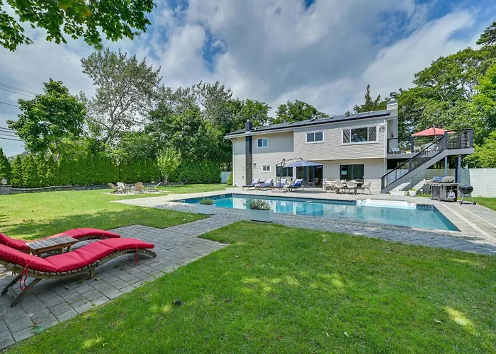 Located 2.6 km from the Rugged Shinnecock East County Beach Park, the 2-bedroom Alluring Hampton Bays Hideaway Less Than 2 Mi To Beach! provides access to a heated swimming pool. Featuring a sunny patio, this accommodation is situated 15 minutes by car from Meschutt Beach County Park.